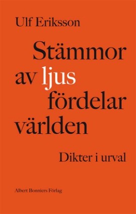 Stämmor av ljus fördelar världen är titeln på den breda urvalsvolym av Ulf Erikssons poesi som nyss utkommit. Här får vi följa poetens utveckling ända från debuten 1982 fram till den nyskrivna samlingen I solens rike, som får avsluta den mer än 450 sidor långa boken.