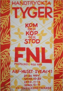 I Textilgruppen förekom flera olika typer av textil konst men det som dominerade var screentryckta metervaror eller vepor. Silkscreentekniken hade vissa förutsättningar och begränsningar som påverkade det konstnärliga uttrycket. Här fanns en ”naturlig” ytmässighet. Här fanns också en tradition att förhålla sig till. I tiden låg också att man valde motiv som berättade något, man hade ett ärende.