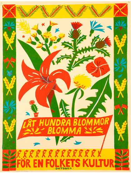 Anledningen till att Låt hundra blommor blomma-affischen var så populär under 1970-talet kan ha varit att den låg så väl i tiden, att den var mycket dekorativ men kanske också att den representerade ett hopp om att tidens nya vänster skulle ha ett vänligare ansikte än den gamla och att den snarare stod för kärlek och mångfald än för våld och likriktning.