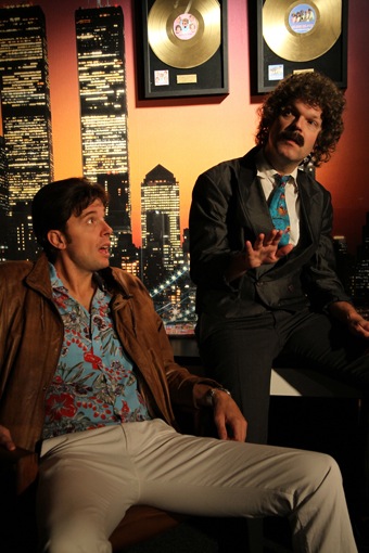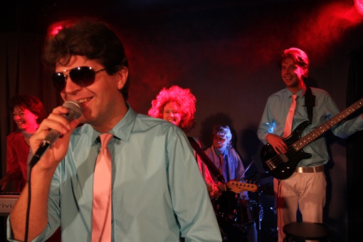 Ensemblen är överlag så åttiotal i klädstil, rörelsemönster och ordval att man blir riktigt nostalgisk. Det är burrhår, hawaiiskjortor och vidärmade skinnjackor. Det är också – ursäkta! – fula midjekorta kavajer och slipsar i tokgrälla färger. Mobiltelefonen väger ett ton och en platta är fortfarande synonymt med vinylditon.![Ulrik Spjut och Mathias Blad liten[1]](http://www.kulturdelen.com/wp-content/uploads/2011/09/Ulrik-Spjut-och-Mathias-Blad-liten1-200x300.jpg)