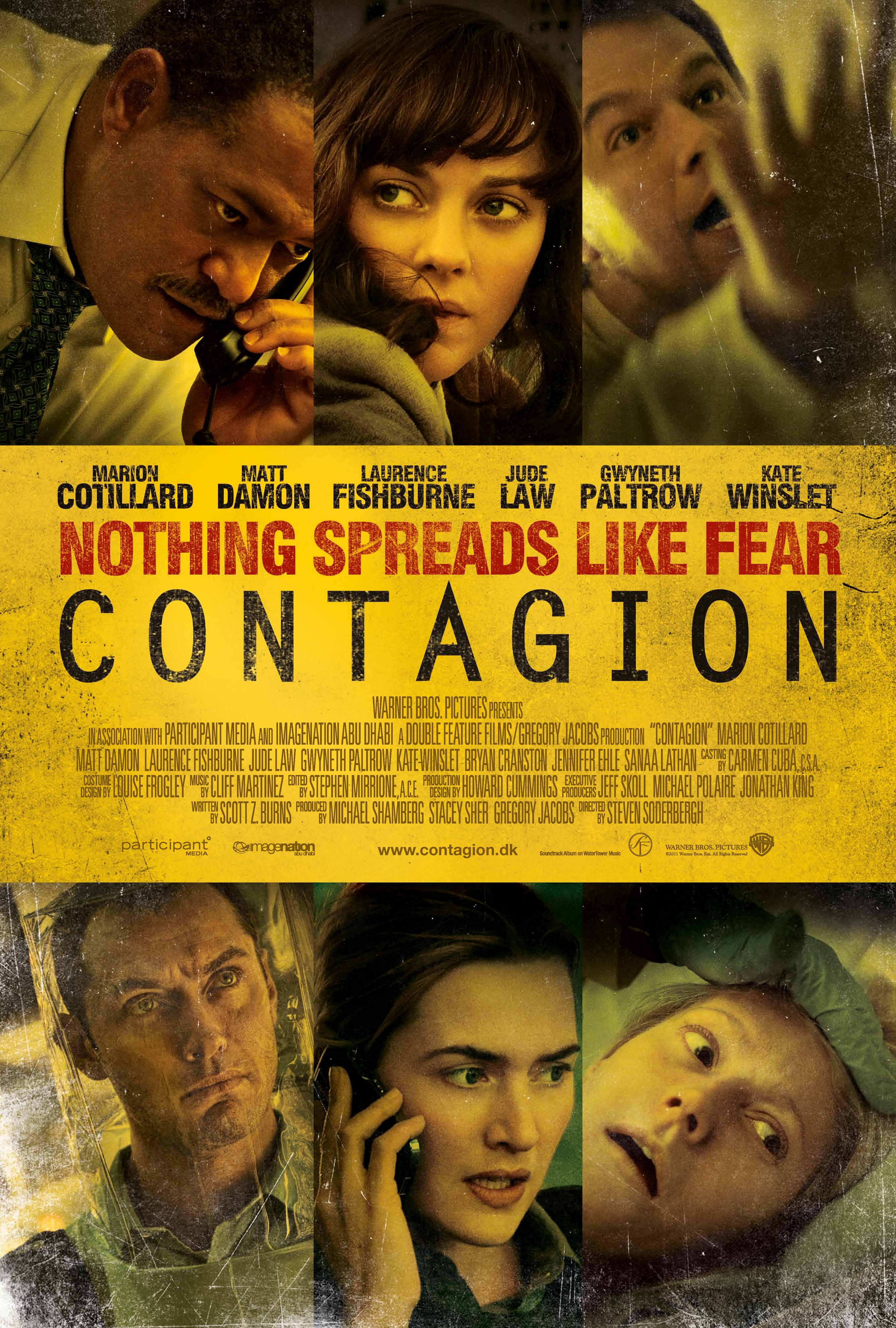 Contagion utmanar snarare hjärnan än dina känslor. Även fast det visuella kanske inte alltid skrämmer så är idéerna skräckinjagande, och de mest skrämmande bilderna som man får med sig hem efter man lämnat biografen – om man bortser från en kort obduktionsscen – är de många närbilderna på folks smitthärder till händer som här tar rollen som råttorna hade under pestens glansdagar. Precis som naturkatastrofer är något som människan har en minimal kontroll över är det ständiga hotet av en ny spanska sjukan ett reellt hot som vi kan rå lite över. Vetenskapen avancerar men likaså gör de resistensbyggande virusen i sin naturliga del av evolutionen. Utan att slå på den stora trumman lyckas Soderbergh med att göra en tät film som både är spännande och tänkvärd genom att utnyttja våra rädslor för vad som kan ske när våra medicinska framsteg helt enkelt inte räcker till.