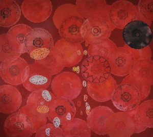 Utställningen fyllde väggarna med ett moget måleri av Mia Fagergren en konstnär som inte fastnat i hämmande traditionell modernism utan svänger sig på slak lina mellan det abstrakta och figurativa. Färgskalan är oftast ljus och pastellartad utan att vara menlös. Tunn olja som ibland, särskilt i en rad spontana skisser, får akvarellens genomskinlighet. Dessa hade dock vunnit på att vara åtskilda, det är de värda. De två mycket stora freskliknande målningarna –” Styx”, i mörka toner och ”Hopp o lek ljum oktober” i röda – hade, enligt min uppfattning, däremot kommit mer till sin rätt om de presenterats nära varandra med sitt släktskap i det gemensamma tårtpappermönstret men färgmässiga motsatser. Titlarna är exempel på Fagergrens både humoristiska, överraskande och tankeväckande titlar på sina verk.