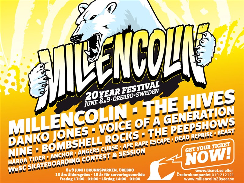 En av Sveriges största rockexporter firar 20 år och gör det ordentligt med en helt egen festival. Festivalen ”Millencolin 20 Year Festival” är en tvådagarsfestival som går av stapeln i Brunnsparken, Örebro, 8-9 juni. Både internationella och svenska artister som Millencollin själva gillar kommer äntra scenen i bandets hemstad Örebro. Bandet kommer själva att avsluta båda kvällarna genom att köra låtar från sin långa karriär.