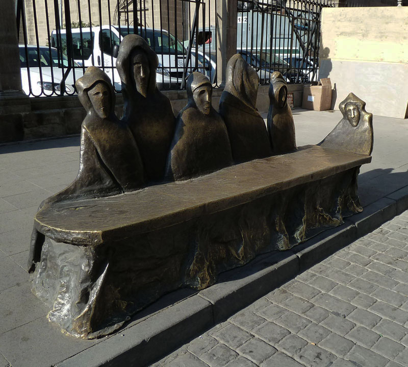 Alldeles bakom katedralen i centrala Mexico City stöter jag på en bänk av brons med gåtfulla kapuschongklädda figurer. Bänken har titeln Ya no hay lugar – det finns ingen plats längre –  och den är ritad av brittiskfödda Leonora Carrington som avled i Mexico City förra året (2011) nittiofyra år gammal. Hon var nog en av de sista överlevande från 1930-talets surrealistgäng i Paris varav flera som Benjamin Peret, Remedios Varo, Alice Rahon och Wolfgang Palen flydde undan fascismen och nazismen för att skapa sig en ny tillvaro i Mexico.