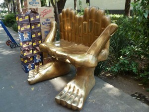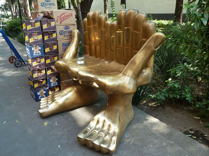 Nu, 2012, har ett antal av bänkarna placerats i Centro Historico. På calle San Jeronimo kan man sätta sig i Pedro Friedebergs guldfägade händer med tolv fingrar – Sientate en mis manos – sätt dig i mina händer. De guldfärgade hand eller hand/fotstolarna har blivit något av hans signum. Friedeberg (1936-), bördig från en tysk-judisk familj i Italien, ingick en tid i början av 1960-talet i surrealistgruppen Los Hartos – de uttråkade eller de övermätta – tillsammans med konstnärerna Mathias Goeritz, Leonora Carrington, Alice Rahon, Remedios Varo och fotografen Kati Horna. Ett i sanning kosmopolitiskt gäng i Mexico City.