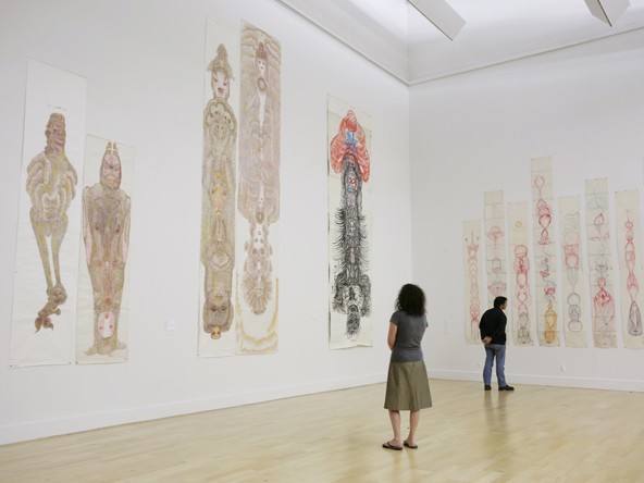Bland utställarna finns Bodys Isek Kingelez från Kongo med sina lekfulla husmodeller. Achilles Gildo Rizzoli (1896-1981) med sina detaljerade ritningar och skisser av byggnader. Bland annat en katedral som egentligen är ett porträtt av hans mor. Marcel Storr (1911-1976) med sina vackra men också hotfulla byggnadskomplex. Och kinesiskan Guo Fengyi (1942-2010) med sina själsliga diagnosbilder. För att bara nämna några.