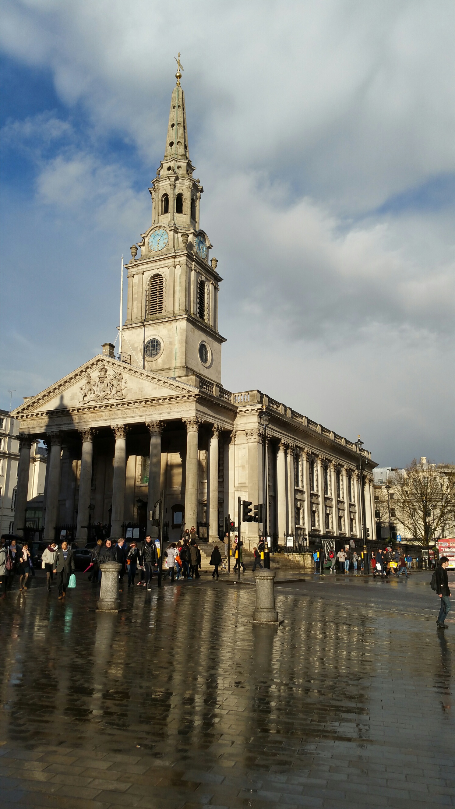 Kyrkan St Martin in the Fields har numera blivit ett av stans mest vitala musikcentra. Här ges mängder av 20160328_190810_resized_1konserter, ofta flera om dagen, och den tidiga musiken är väl företrädd. Mängder av konserter alltså – men nästan aldrig någon gudstjänst! Kyrkan, som även arbetar för att hjälpa flyktingar och hemlösa, har en lång, progressiv historia, men musikverksamheten utgör navet i verksamheten. Här gjorde Neville Marriner sin epokgörande inspelning av Bachs Brandenburgkonserter med The Academy of St Martin in the Fields: jag fick skivan 1971, som 15-åring; den lp:n blev för mig porten in till klassisk musik… Neville Marriner, som fortfarande, vid 92 års ålder, framträder som dirigent (!), har haft en enorm betydelse för barockmusikens breda återkomst från 1970-talet och framåt och där framför allt användningen av tidstrogna instrument efterhand kommit att gjuta nytt liv i många tolkningar.