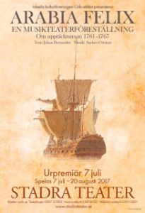 För årets pjäs, rubricerad som musikteater, svarar två Stadraveteraner: dramatikern och regissören Johan Bernander och tonsättaren och musikern Anders Ortman. Arabia felix, ”det lyckliga Arabien”, handlar om Linnélärjungen Peter Forsskål och den expedition till Jemen som tog hans liv. Forsskål var inte bara botaniker utan även en världsförbättrare, inte minst känd för sina djärva och framsynta insatser för tryckfriheten. Premiären äger rum den 7 juli.