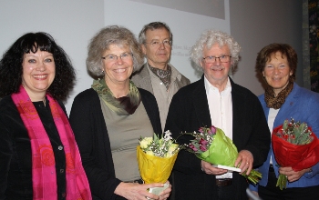 Foto: Eva Lidén. Bilden visar, från vänster, Karin Perers, samtalsledare, Anki Ingelström, arkitekt, Lars Ingelström, länsarkitekt, Jan Burell, arkitekt, och Britt Källström, ordförande för Sockenrådet i Sundborn